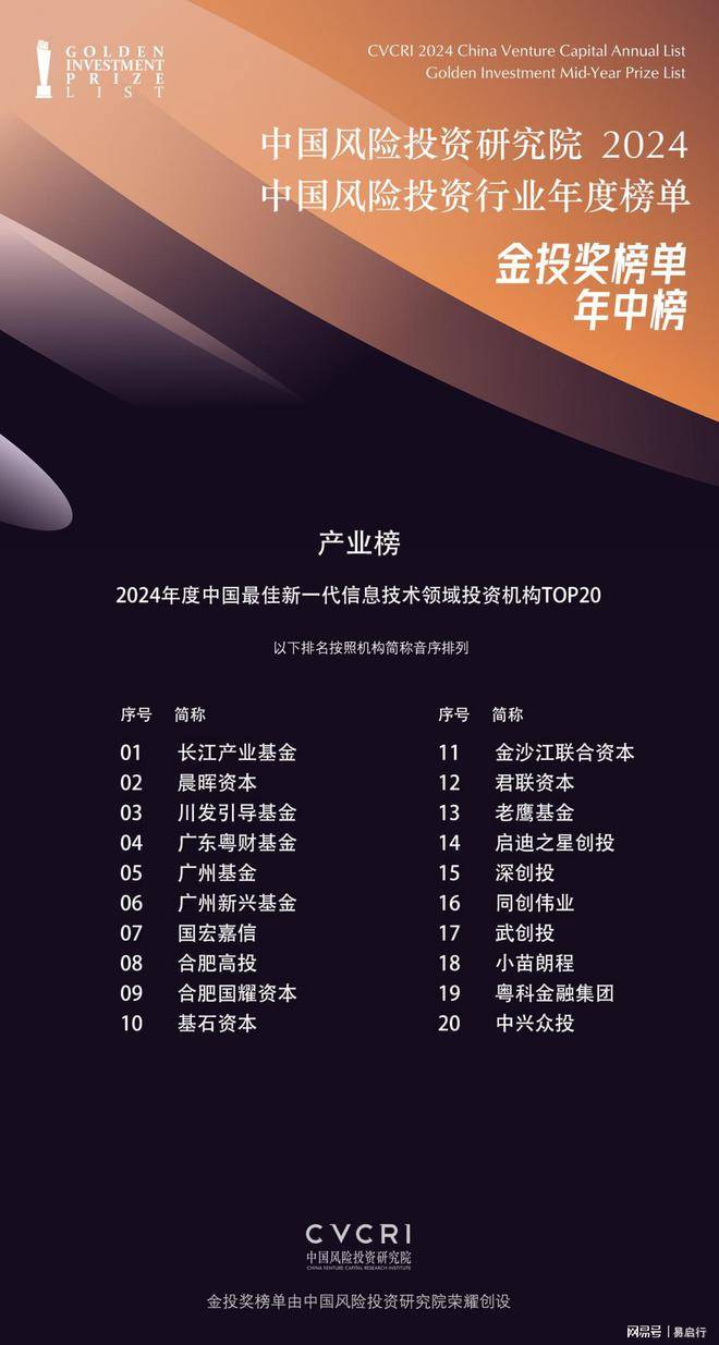 2024年度中国最佳新一代信息技术领域投资机构TOP20