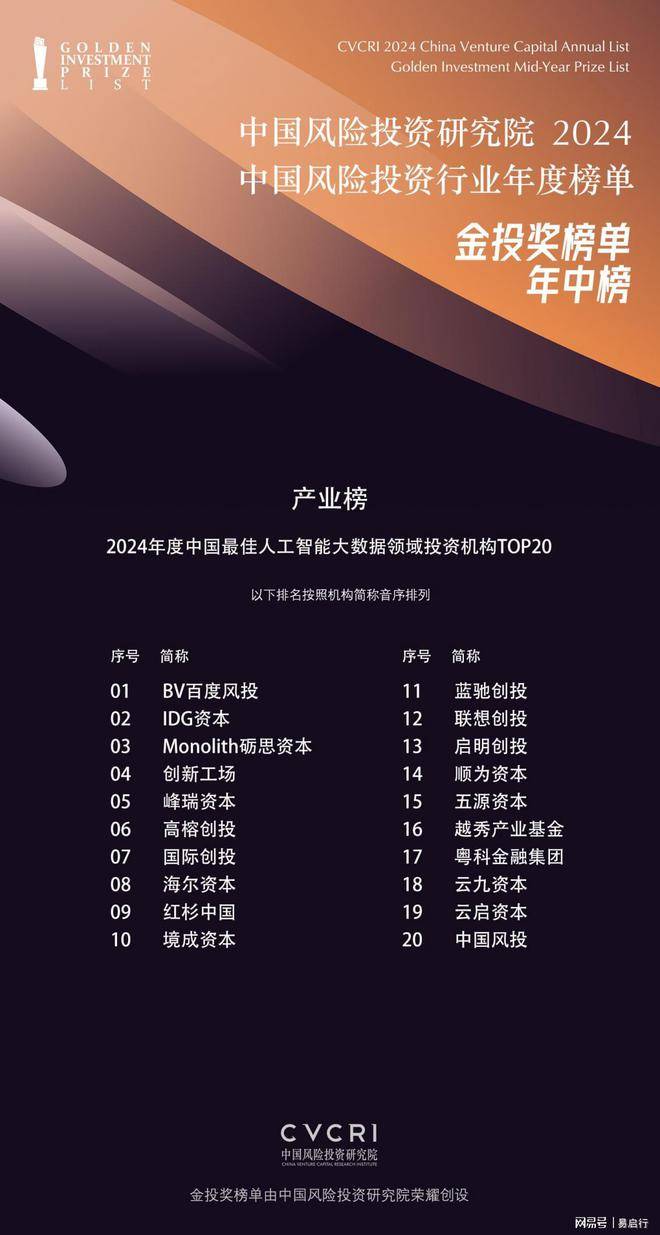 2024年度中国最佳人工智能大数据领域投资机构TOP20