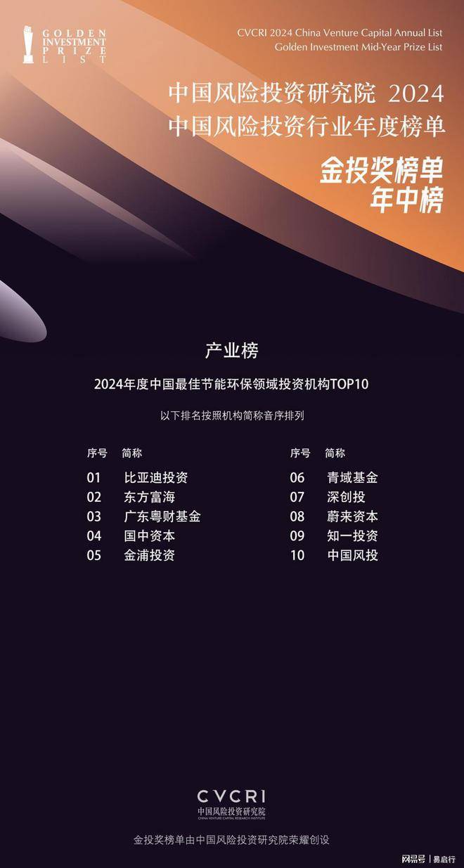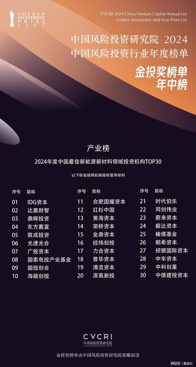 2024年度中国最佳新能源新材料领域投资机构TOP30